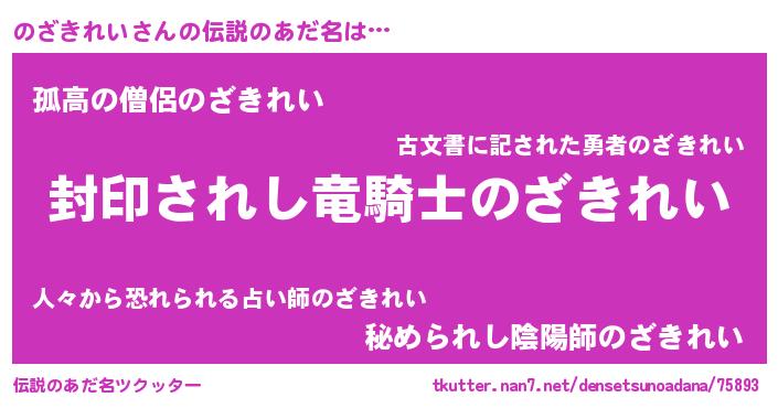| 女子向けラノベタイトル風あだ名 | 『のざきれいストレイドッグス』 |