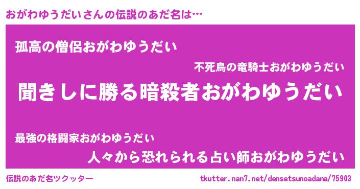 | 意味不明あだ名 | 『永久保存おがわゆうだい』 |