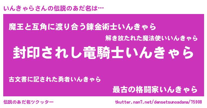 | ヒーロー風カッコイイあだ名 | 『スーパーインキャラ』『黄金騎士イン』 |