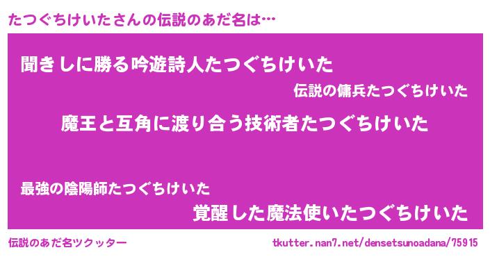 | 意味不明あだ名 | 『住所不定無職たつぐちけいた(5歳)』 |