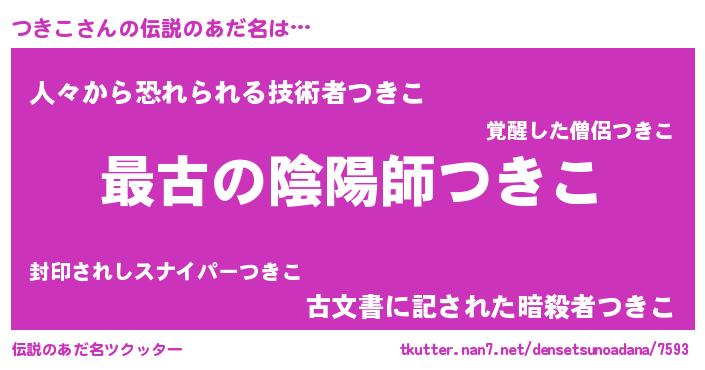 | ヒーロー風カッコイイあだ名 | 『最強戦士ツキコ』『ウルトラつきこマン』 |