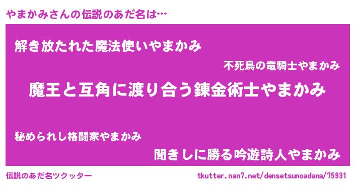 | ヒーロー風カッコイイあだ名 | 『仮面ヤマダー』『愛の使者やまかみ』 |