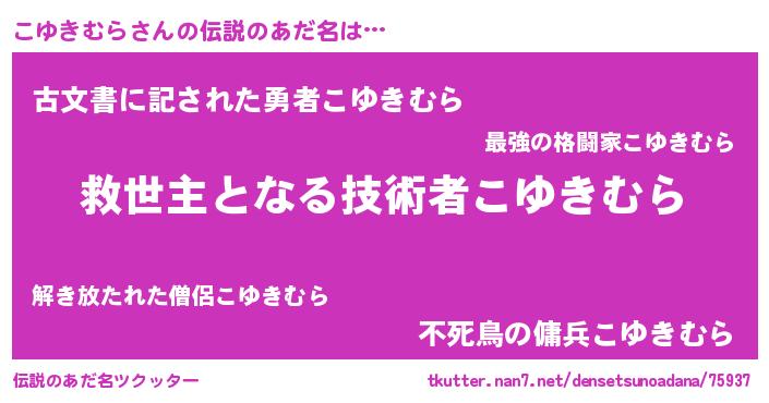 | 意味不明あだ名 | 『住所不定無職こゆきむら(9歳)』 |