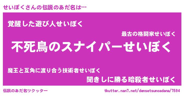 | ヒーロー風カッコイイあだ名 | 『スーパーセイボク』『天弓騎士セイ』 |