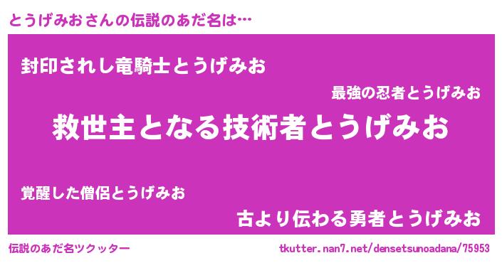 | ヒーロー風カッコイイあだ名 | 『天空の使者とうげみお』『仮面トウダー』 |