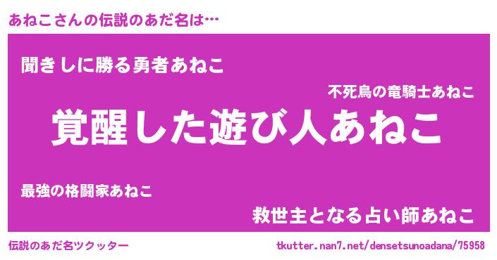| 意味不明あだ名 | 『とにかく怪しいあねこ』『自称あねこ』 |