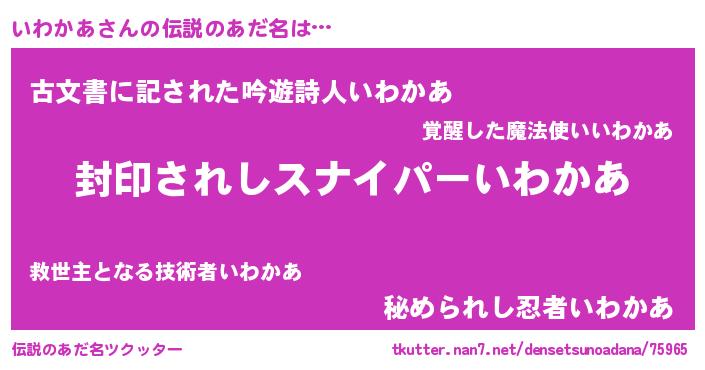| ヒーロー風カッコイイあだ名 | 『スーパーイワカア』『ネオイワカア』 |
