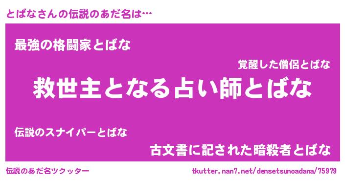 | ヒーロー風カッコイイあだ名 | 『天空の使者とばな』『ネオトバナ』 |