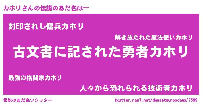 | ヘコむあだ名 | 『カホリ(遠い目)』『カホっふぃ~』 |