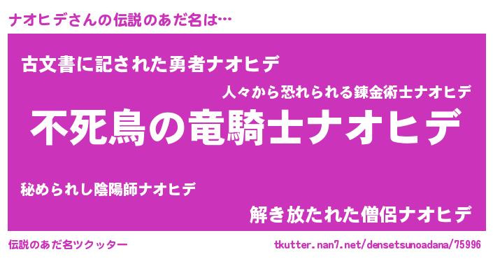 | ヒーロー風カッコイイあだ名 | 『スーパーナオヒデ』『ネオナオヒデ』 |