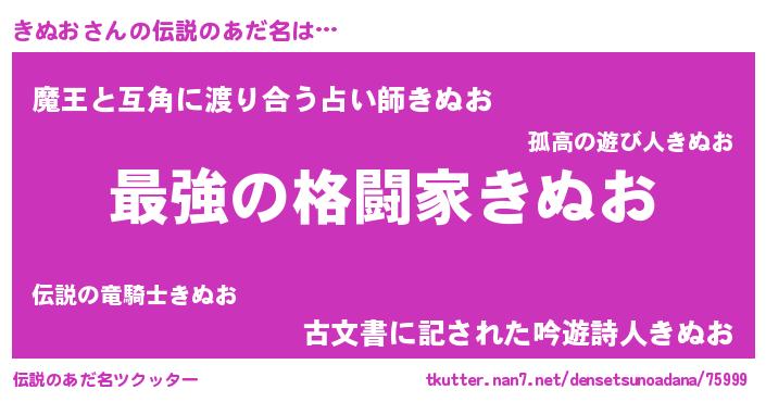 | 女子向けラノベタイトル風あだ名 | 『きぬおの婚約者』『きぬお恋絵巻』 |