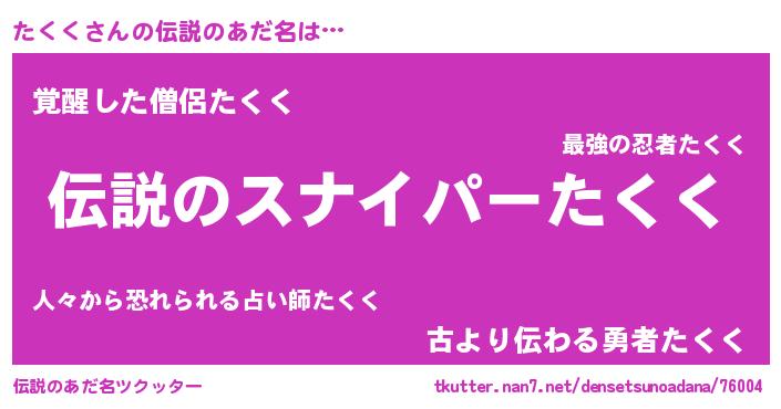 | 胡散臭い通販商品みたいなあだ名 | 『必ず成功する霊験あらたかなお札…その名も「たくく」』 |