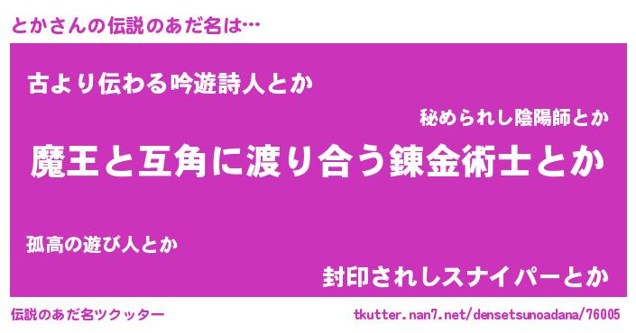 | ヒーロー風カッコイイあだ名 | 『慈愛の使者とか』『ネオトカ』 |