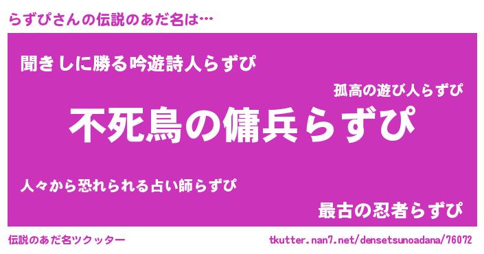 | 胡散臭い通販商品みたいなあだ名 | 『モテモテ間違いなし水晶球…その名も「らずぴ」』 |