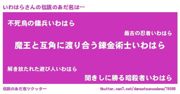 | 男性向けラノベタイトル風あだ名 | 『この素晴らしい世界にいわはらを!』 |