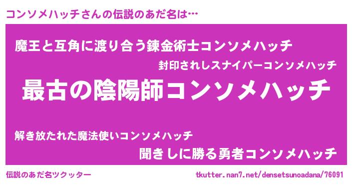 | ヒーロー風カッコイイあだ名 | 『ウルトラコンソメハッチマン』 |