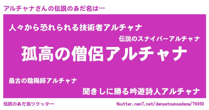 | ヘコむあだ名 | 『アルっぺ』『アルチャナ(小並感)』 |