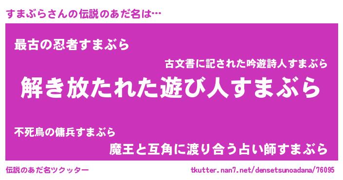| ヒーロー風カッコイイあだ名 | 『魔戒騎士スマ』『ウルトラすまぶらマン』 |