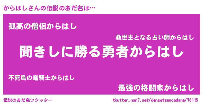 | 男性向けラノベタイトル風あだ名 | 『からはしという概念が存在しない退屈な世界 』 |