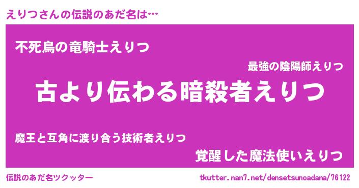 | 意味不明あだ名 | 『住所不定無職えりつ(65歳)』 |