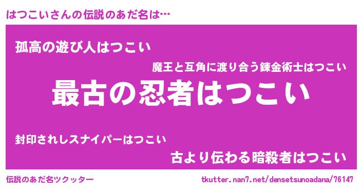 | ヒーロー風カッコイイあだ名 | 『サイバー戦士ハツコイ』『仮面ハツダー』 |