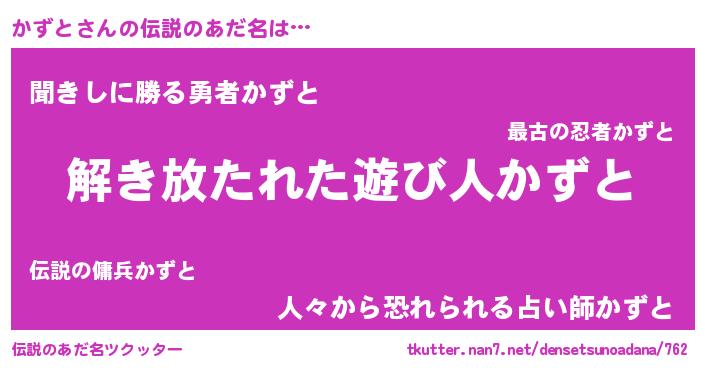 | 女子向けラノベタイトル風あだ名 | 『かずとの卵を拾いまして』『闇のかずと』 |