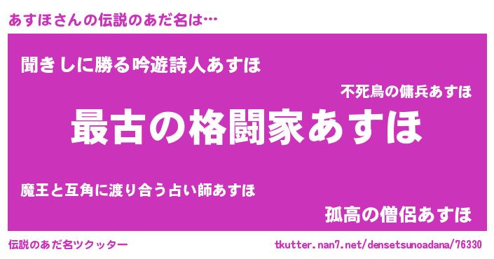 | ヘコむあだ名 | 『なまこ酢』『あすほ(笑)』『あすお』 |