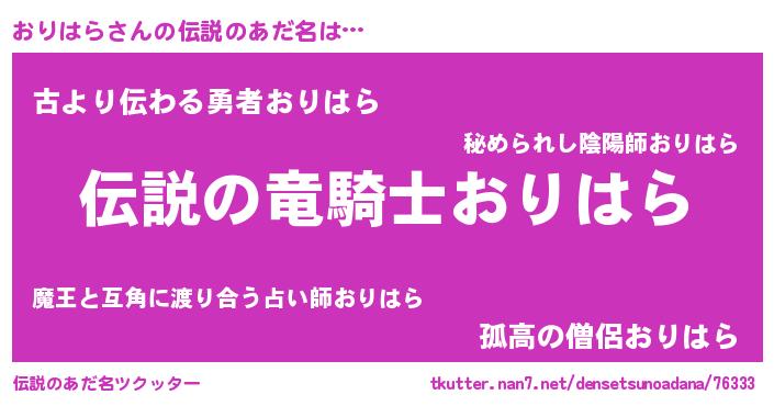 | ヒーロー風カッコイイあだ名 | 『超時空戦士オリハラ』『ネオオリハラ』 |