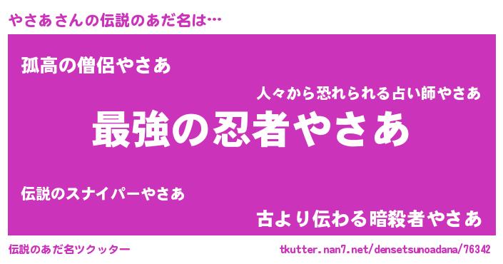 | 意味不明あだ名 | 『やさあフォーエバー』『自称やさあ』 |