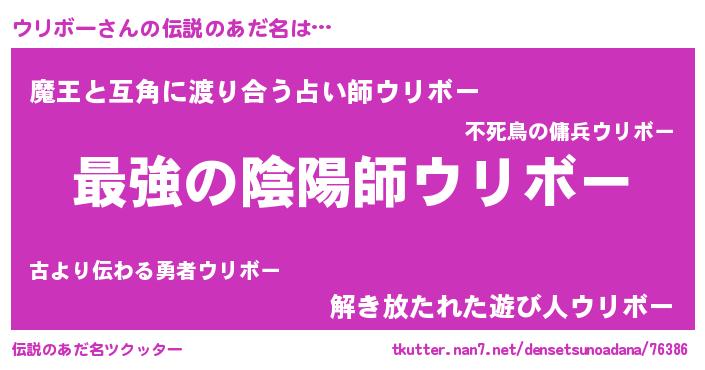 | ヒーロー風カッコイイあだ名 | 『ウルトラウリボーマン』『仮面ウリダー』 |