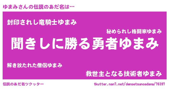 | ヘコむあだ名 | 『ゆまみ(苦笑)』『ゆまふぇ~』 |