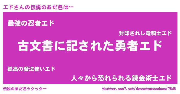 | 男性向けラノベタイトル風あだ名 | 『この素晴らしい世界にエドを!』 |