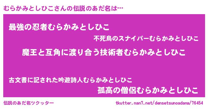 | 女子向けラノベタイトル風あだ名 | 『むらかみとしひこ恋絵巻』 |