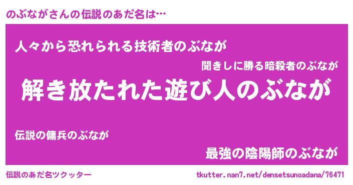 | 女子向けラノベタイトル風あだ名 | 『闇ののぶなが』『のぶながは平凡を望む』 |