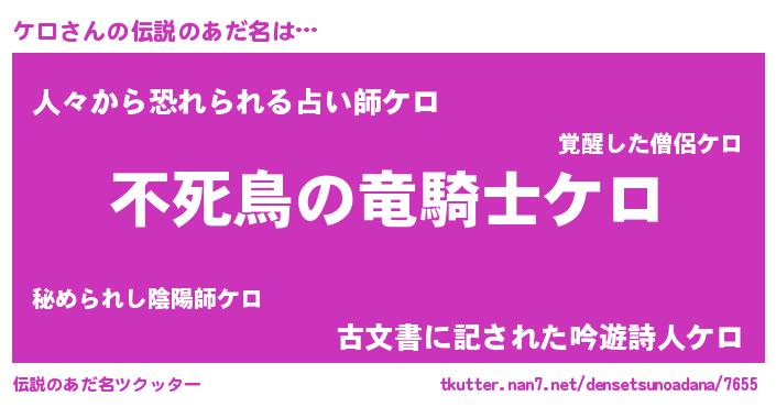 | 男性向けラノベタイトル風あだ名 | 『魔弾の王とケロ』『緋弾のケロ』 |