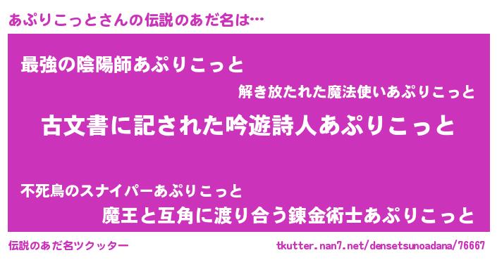 | 意味不明あだ名 | 『永久保存あぷりこっと』 |