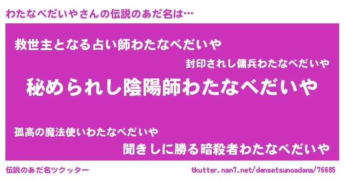 | 男性向けラノベタイトル風あだ名 | 『やはりわたなべだいやの青春ラブコメはまちがっている 』 |