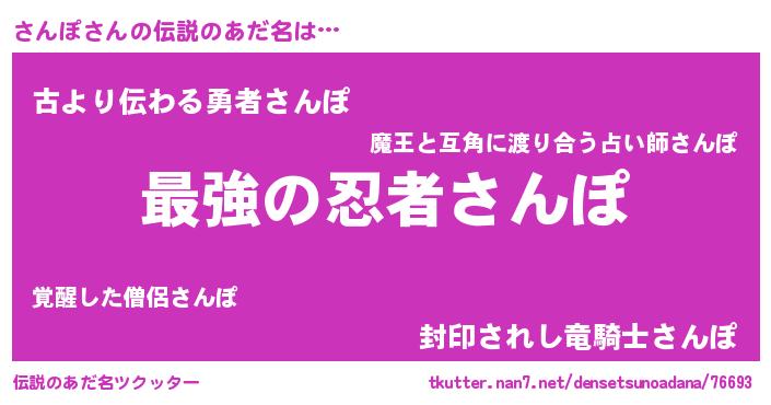 | ヒーロー風カッコイイあだ名 | 『ウルトラさんぽマン』『ネオサンポ』 |