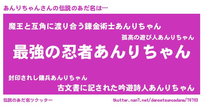 | ヒーロー風カッコイイあだ名 | 『ウルトラあんりちゃんマン』 |