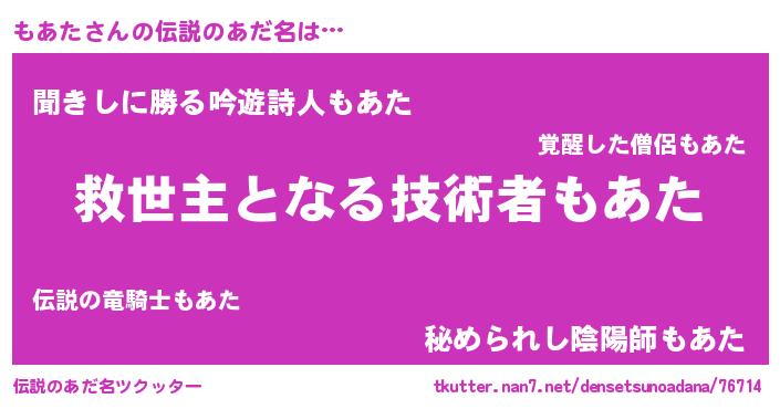 | ヒーロー風カッコイイあだ名 | 『慈愛の使者もあた』『ネオモアタ』 |