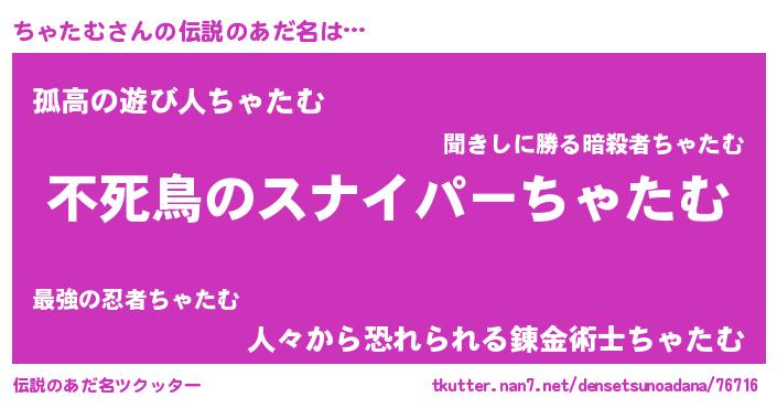 | ヒーロー風カッコイイあだ名 | 『スーパーチャタム』『黄金騎士チャ』 |