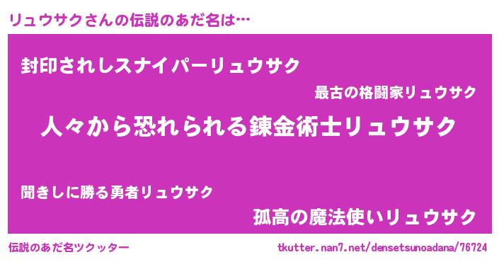 | ヒーロー風カッコイイあだ名 | 『友情の使者リュウサク』『黄金騎士リュ』 |