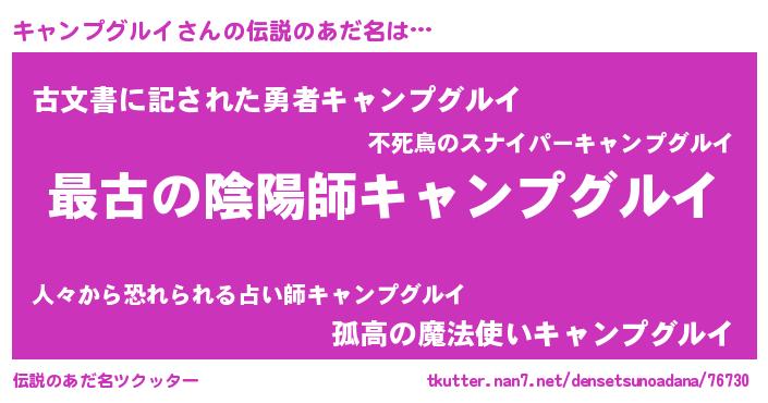 | 意味不明あだ名 | 『なめこ科キャンプグルイ属』 |