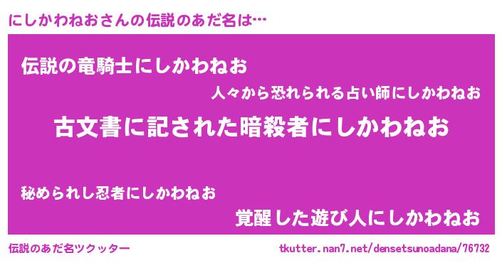 | 意味不明あだ名 | 『永久保存にしかわねお』 |