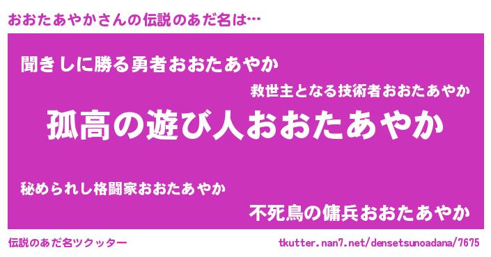 | ヒーロー風カッコイイあだ名 | 『黄金騎士オオ』『ネオオオタアヤカ』 |