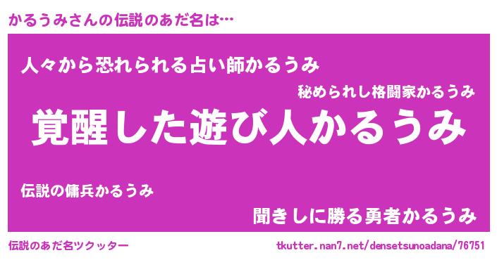 | ヒーロー風カッコイイあだ名 | 『天弓騎士カル』『正義の使者かるうみ』 |