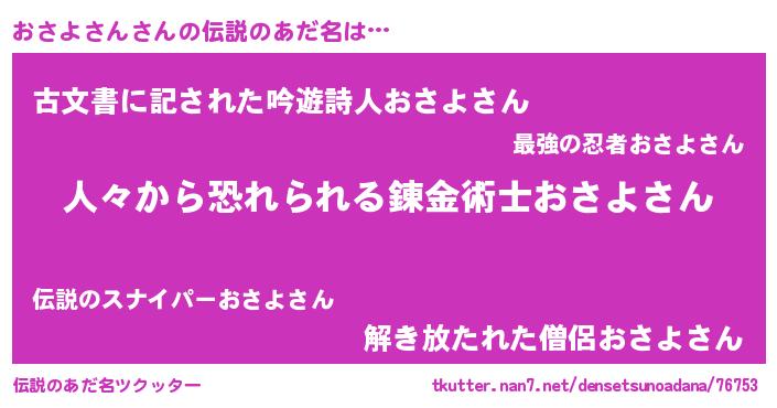 | ヘコむあだ名 | 『おさよさん(震え声)』『おさぷりん』 |