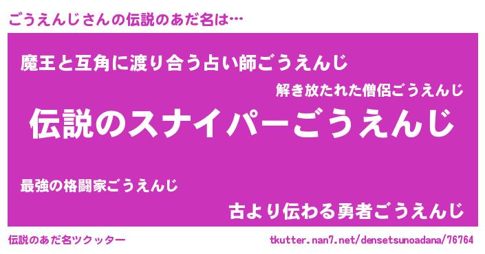 | 意味不明あだ名 | 『住所不定無職ごうえんじ(85歳)』 |