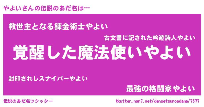 | ヒーロー風カッコイイあだ名 | 『炎刃騎士ヤヨ』『仮面ヤヨダー』 |