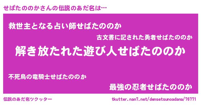 | 意味不明あだ名 | 『とにかく怪しいせばたののか』 |